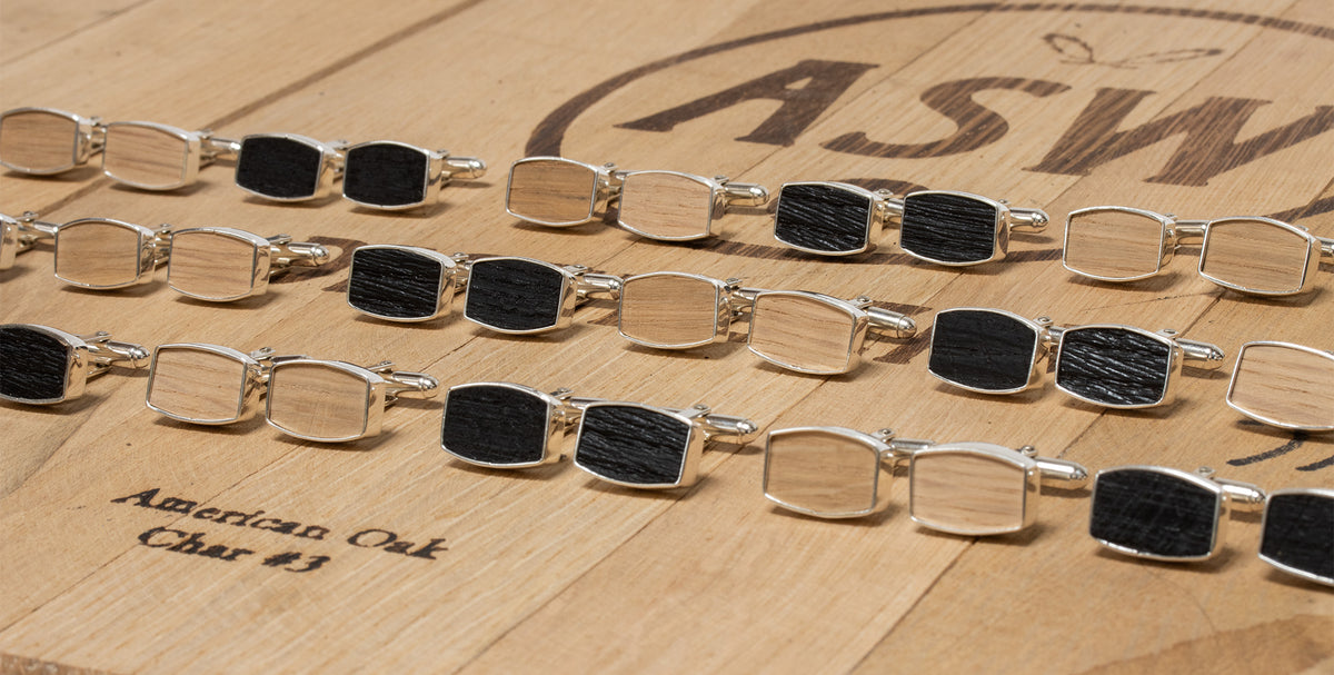 The barrel wood, and wood in general being shapable, makes for an excellent medium with which to express a variety of items. The staves have a wonderful charred patina that added an aged, vintage quality to this collection of barware and accessories that one might wear when out for an evening of Bourbon tasting.